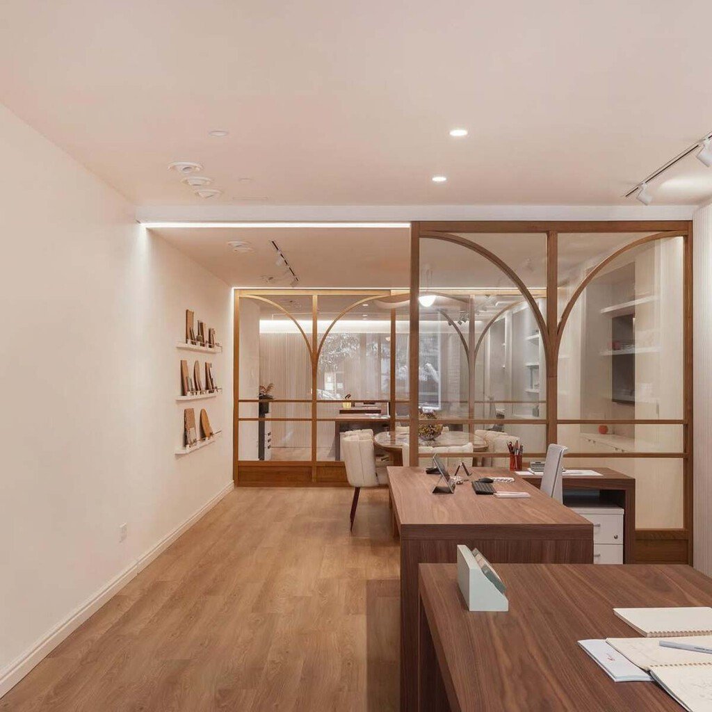 Los tabiques de media altura o las mamparas fijas se han convertido en una alternativa elegante para quienes desean mantener la luz natural sin renunciar a la sensación de separación. Los paneles de cristal o vidrio acanalado son especialmente populares porque dejan pasar la claridad y amplían visualmente, pero reducen el ruido y marcan límites sutiles entre estancias.